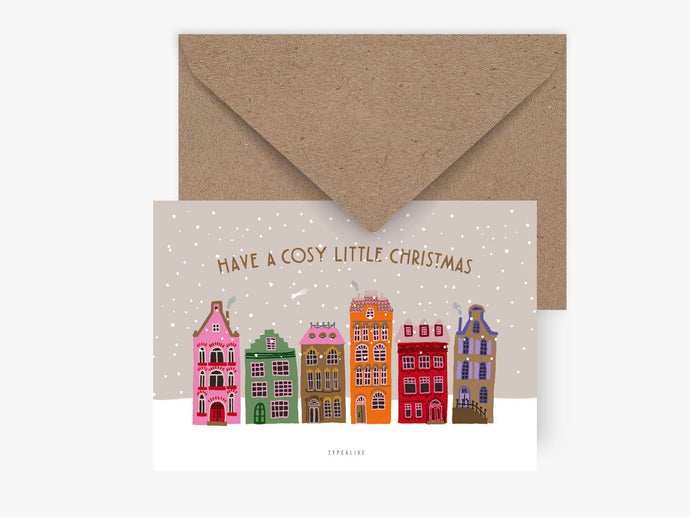 Joulukortti Joulutalot – Idyllistä Talvitunnelmaa