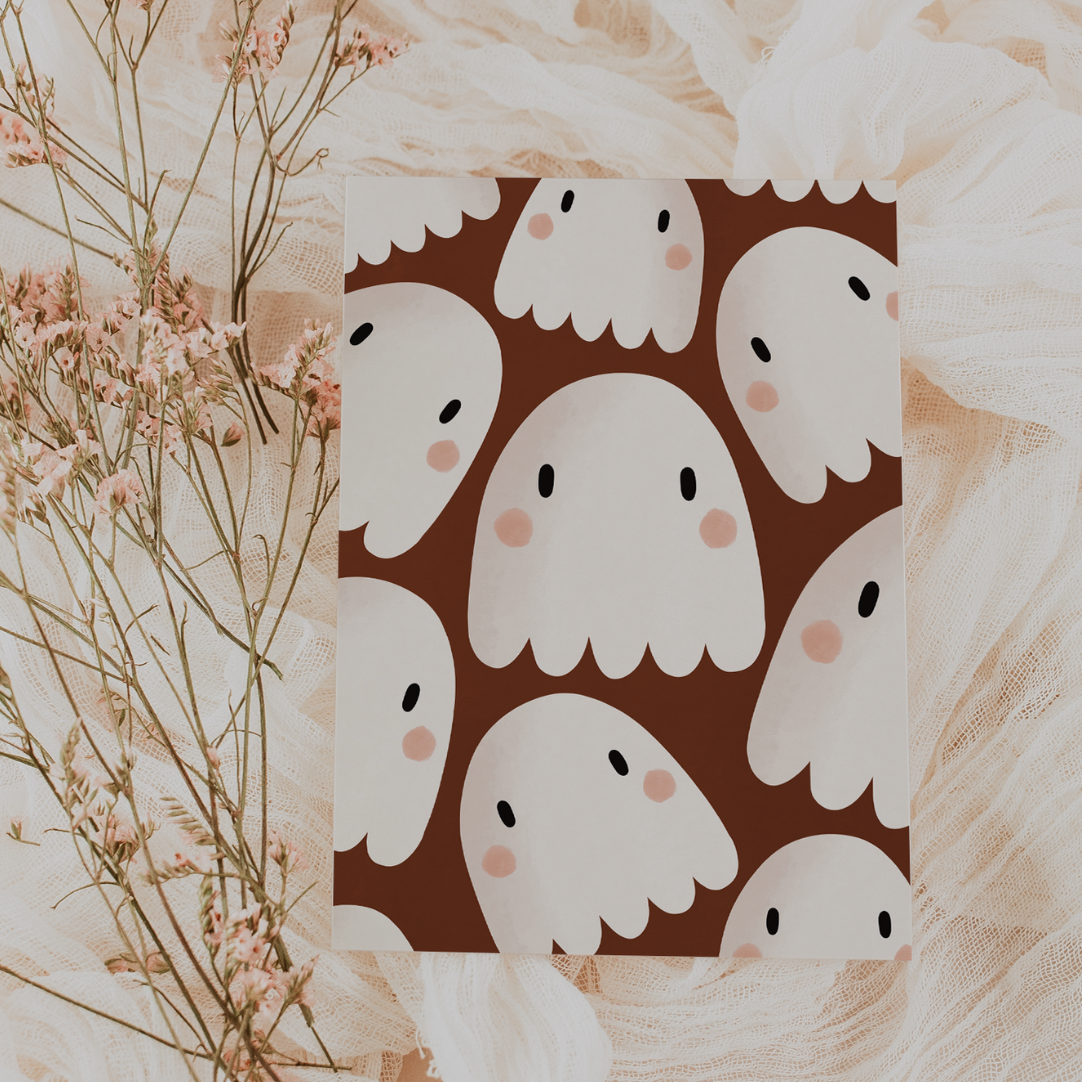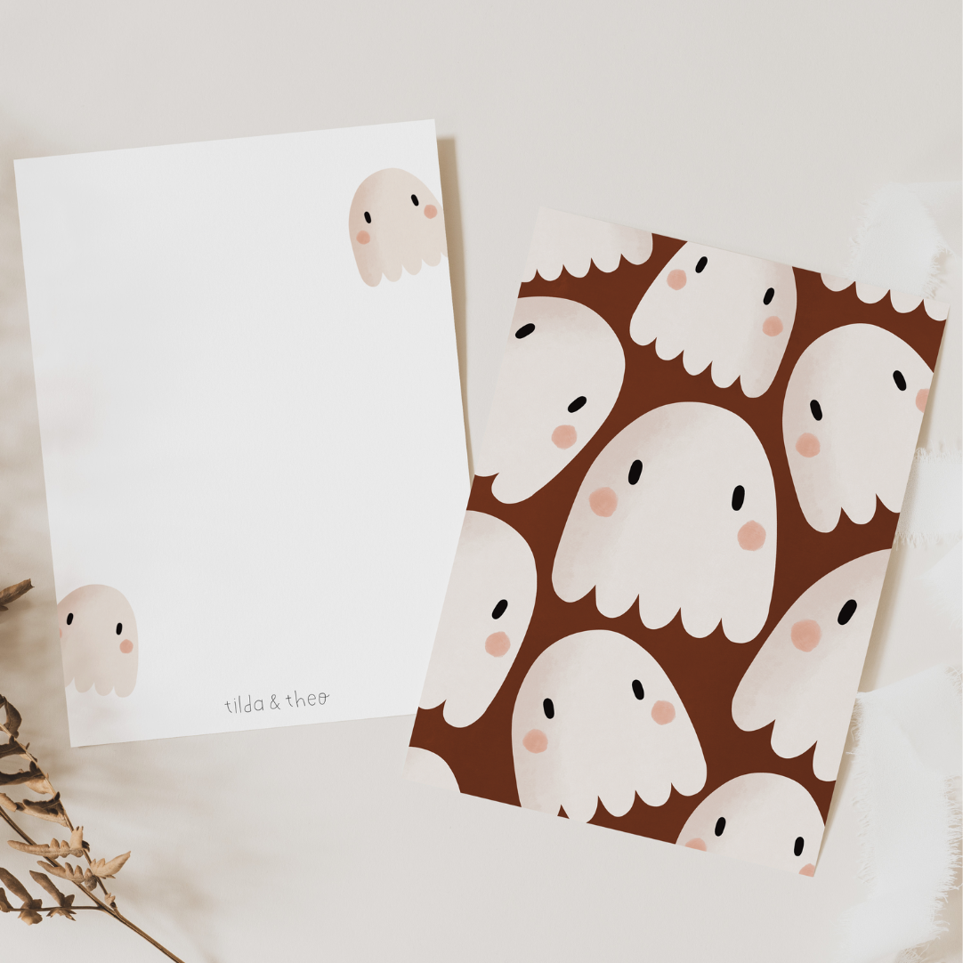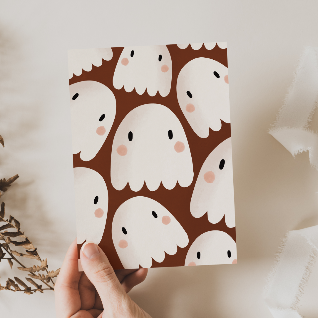 Halloween Kummitus Postikortti – Suloinen Syystervehdys