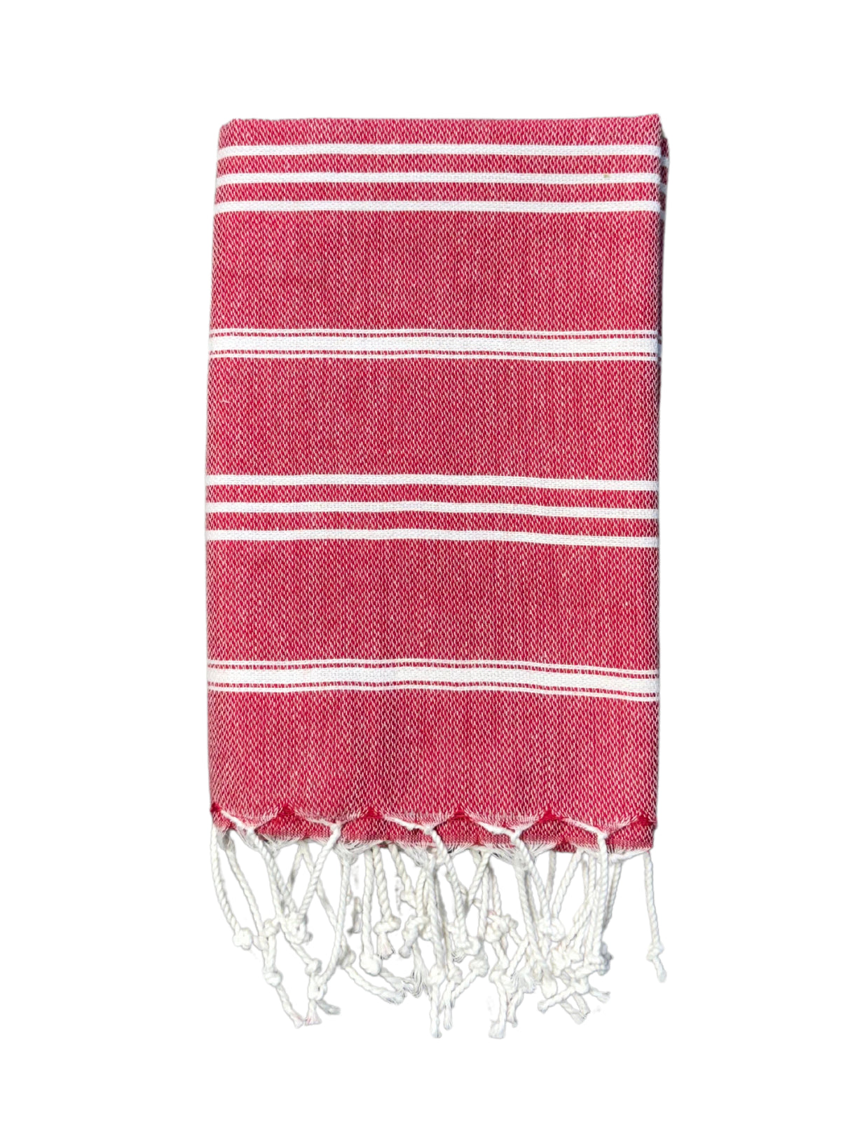Tyylikkäässä Aamu hamam-käsipyyhkeessä on ripustuslenkki ja käsinsolmitut hapsut molemmissa päissä.