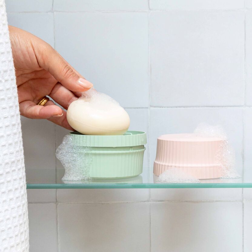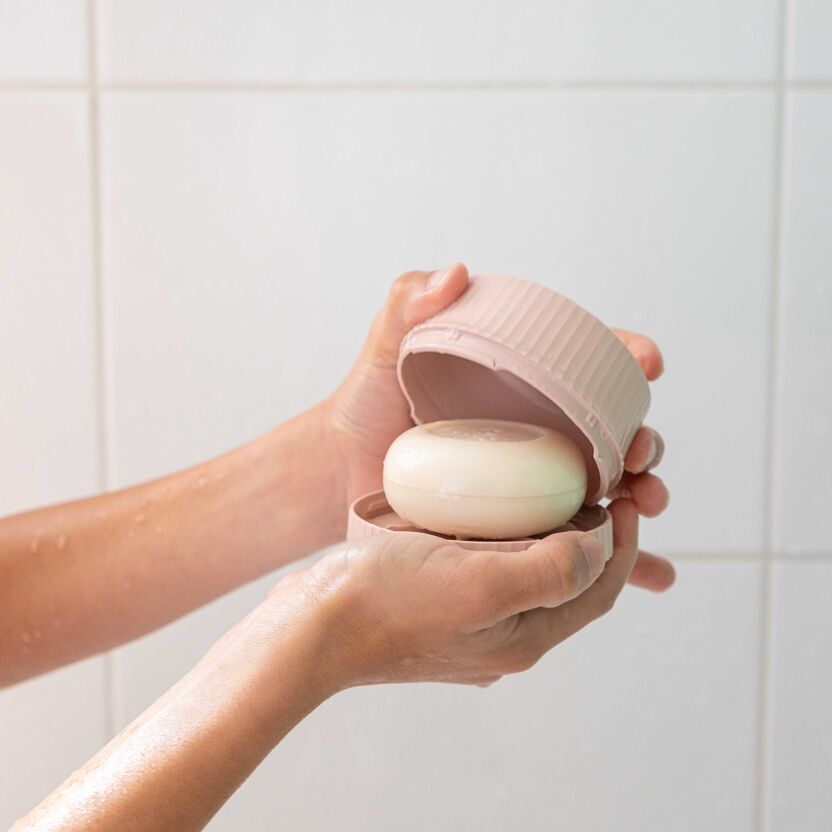 Tämä pyöreä, integroidulla alustalla varustettu saippuakotelo on suunniteltu kuljettamaan kiinteät saippuat ja palashampoot vaivatta mukana matkoilla, vaelluksilla tai vaikkapa uimahallissa.