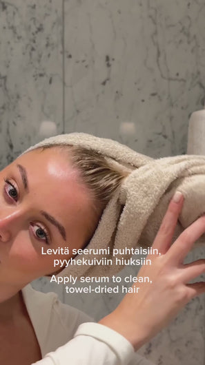 Vinkki: Hiukset kannattaa föönata levityksen jälkeen, jolloin seerumin volyymia antava efekti korostuu ja hiustyvi nousee ilmavasti.